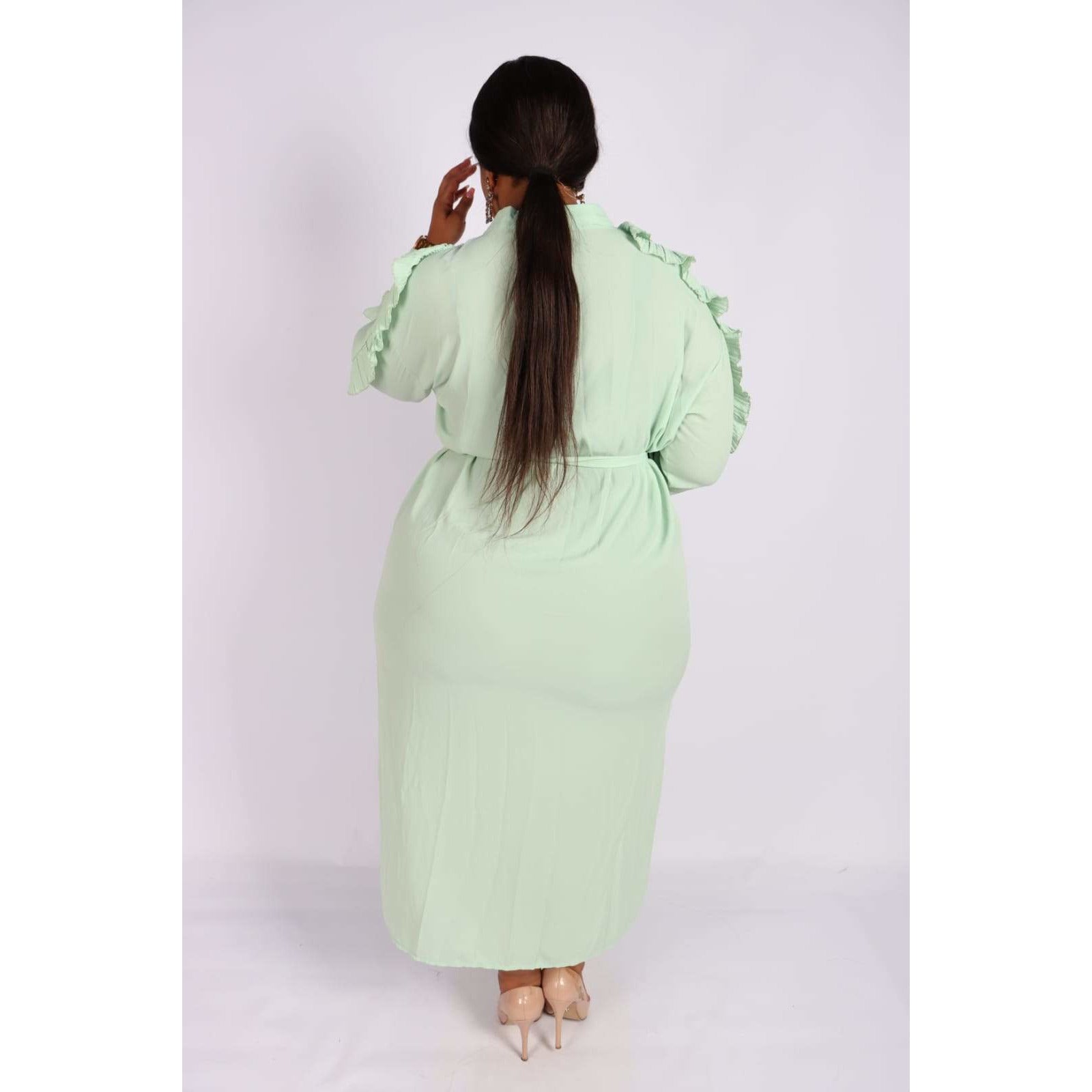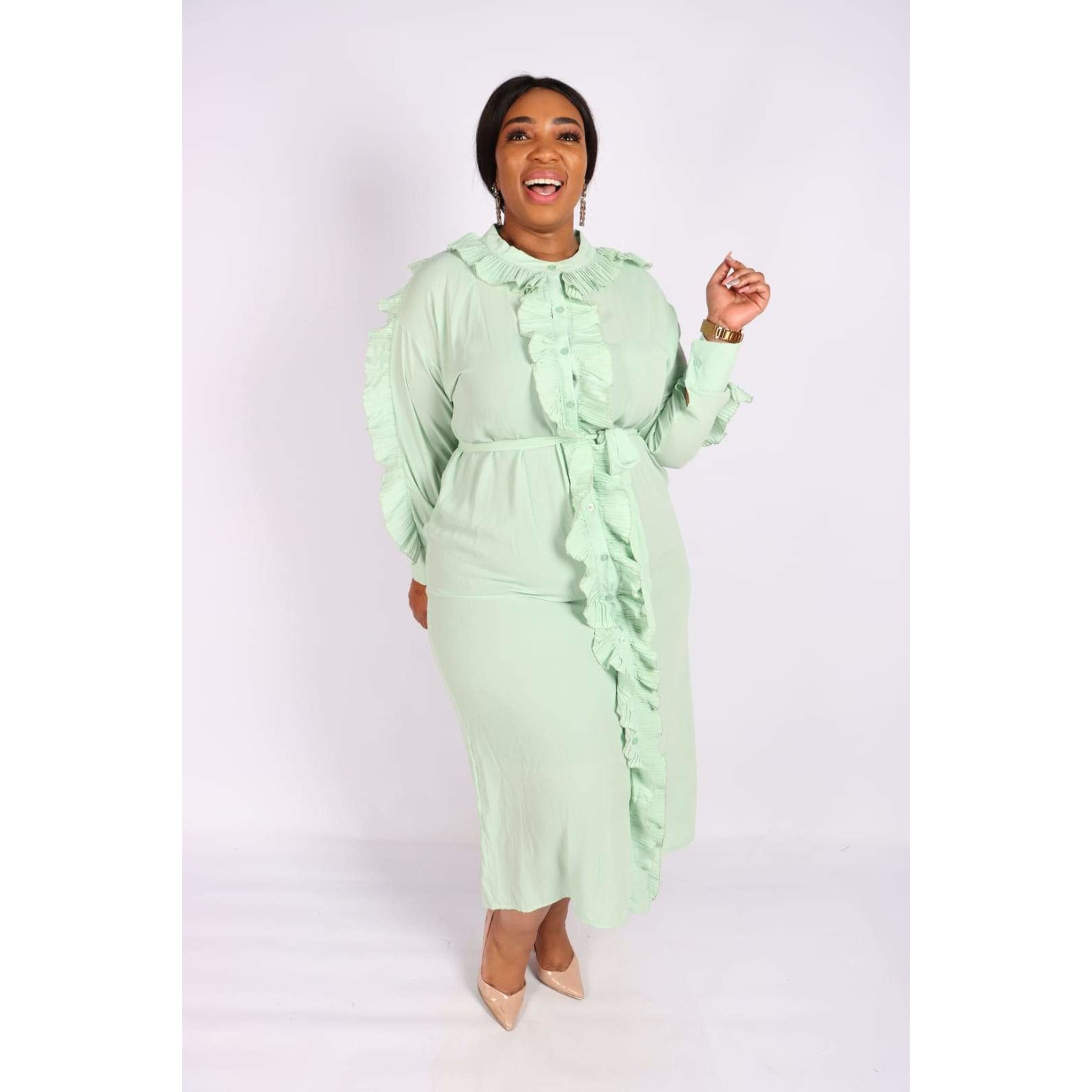 Front Ruffle Dress This dress features a flattering front ruffle design, adding a touch of charm and sophistication to your wardrobe. Made from high-quality materials, it boasts a comfortable fit that will make you feel confident and beautiful.