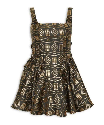 Indulge in luxury with this stunning Gold Brocade Mini Dress. Made with high-quality fabric and detailed craftsmanship, it exudes elegance and sophistication. Perfect for special occasions, this dress is guaranteed to make you stand out from the crowd.