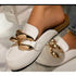 Look stylish and feel comfortable with gold chain closed sandals. With their closed toe design and thick gold chain accents, these shoes provide a modern look and luxurious feel. Enjoy a secure fit and lightweight feel for your all-day wear.