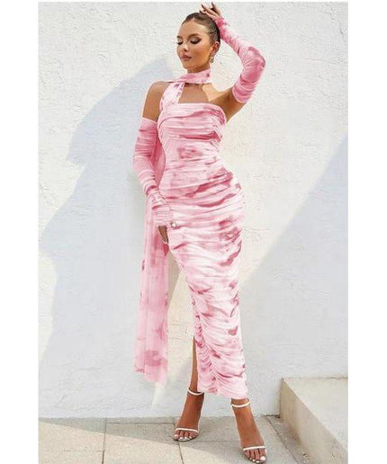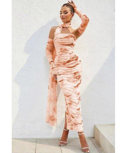 This dress features a halter neck, sleeveless design that effortlessly flatters your figure. The A-line silhouette with 3 flowy layers adds depth and movement to your look, creating a timeless and elegant style. Perfect for any occasion, this dress offers versatility and comfort without sacrificing style.