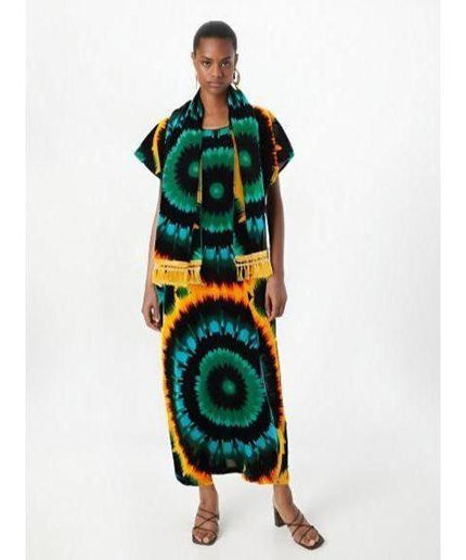This dress is hand dyed and has a loose fit, perfect for beach wear or lounging at home. The tie dye pattern gives it a unique and stylish look. Made with comfortable, high quality materials, this dress is both fashionable and easy to wear.