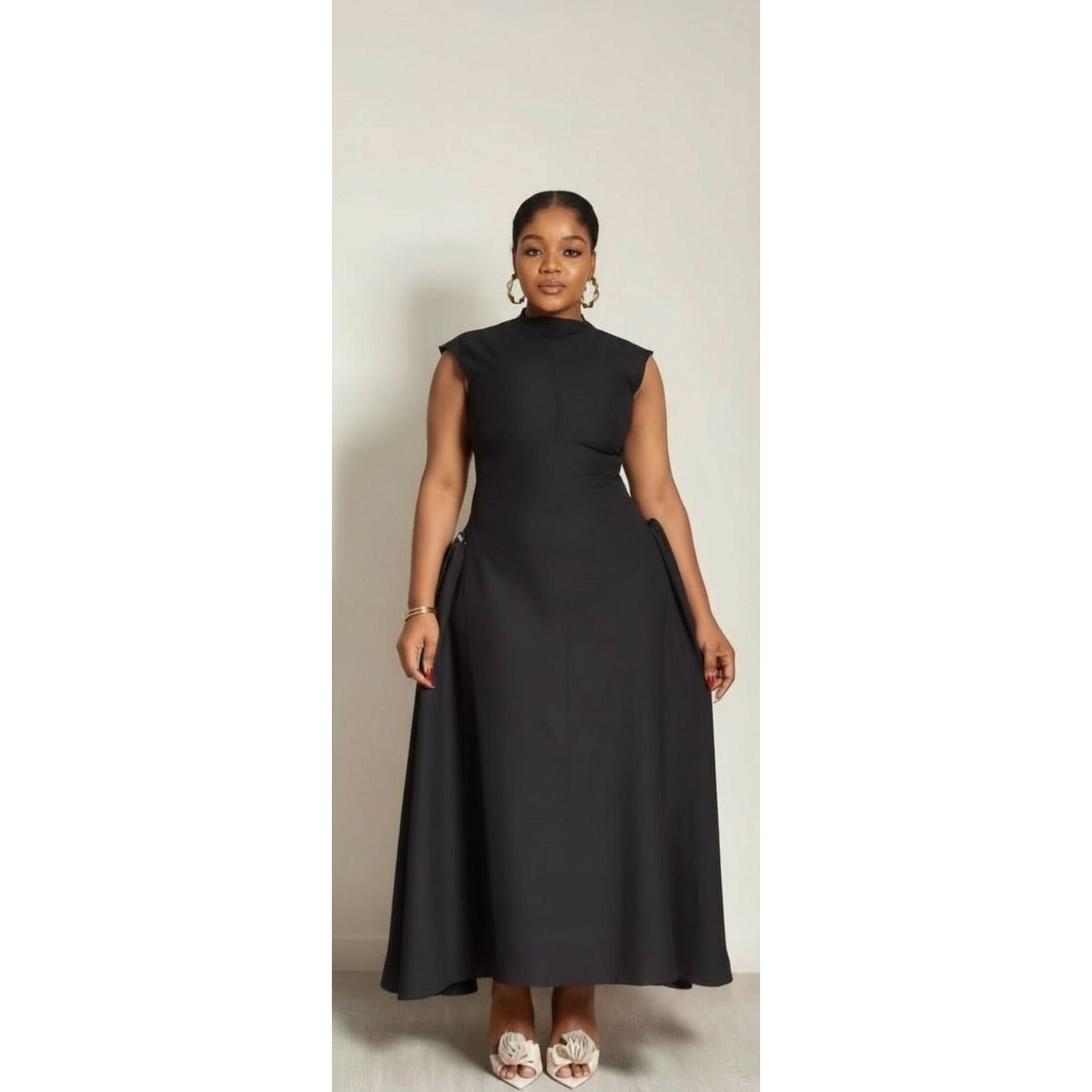 High Collar Sleeveless A-line Pleated Robe Maxi Dress