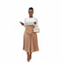 Master the art of style with our High waist Pleated Midi skirt. The A-line design and mid-length cut create a flattering silhouette that will elevate your look. Designed for fashion-forward individuals, this skirt effortlessly combines elegance with trend-setting design, giving you the best of both worlds.