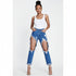 High Waisted Cut out Ripped Jeans Elevate your style with our high-waisted cut out jeans. The strategically placed rips and tears add an edgy touch to any outfit. Made with high-quality denim, these jeans are built to last. With their slimming high waist and trendy cutouts, you'll look and feel confident all day.
