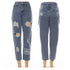 High Waisted Ripped Mommy Jeans Designed for both style and comfort, these high waisted ripped mommy jeans are the perfect addition to any wardrobe. They are made with high-quality denim and feature a stylishly ripped design, giving you a modern and edgy look. With these jeans, you'll feel confident and fashionable no matter where you go. They are also designed to sit above the waist, providing support and creating a flattering silhouette. These jeans are a must-have for anyone looking for both fashion and function in their everyday clothing options.