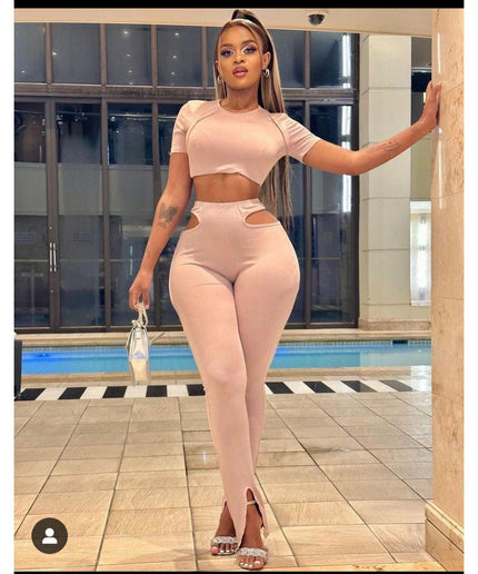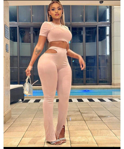 Elevate your style with the Hollow Out Ankle Side Split Trousers & Crop Top Set, designed to combine comfort and trendsetting fashion. The trousers feature a unique hollow-out design and side splits at the ankles, offering both breathability and a flattering silhouette. Paired with a matching crop top, this set is perfect for making a bold statement whether you're out with friends or attending a casual event. Crafted for ease of movement and eye-catching appeal, it’s a versatile addition to your wardrobe that effortlessly blends modern edge with everyday wearability.