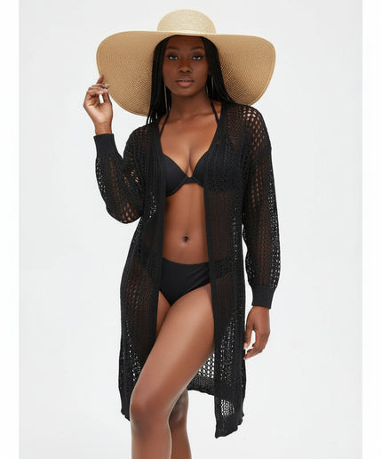 Hollow Out Long Sleeve Casual Cardigan. Layer up in style with this long sleeve casual cardigan. Made with hollow out details, this cardigan adds a touch of elegance to your wardrobe. Perfect for any casual occasion, this cardigan is a versatile addition to any outfit.