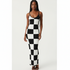 Knit Sleeveless Checkerboard Print Bodycon Maxi Dress