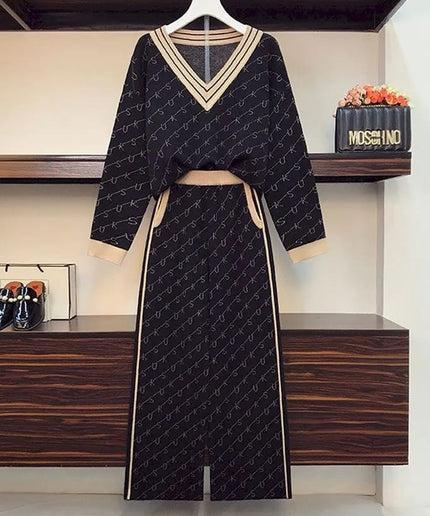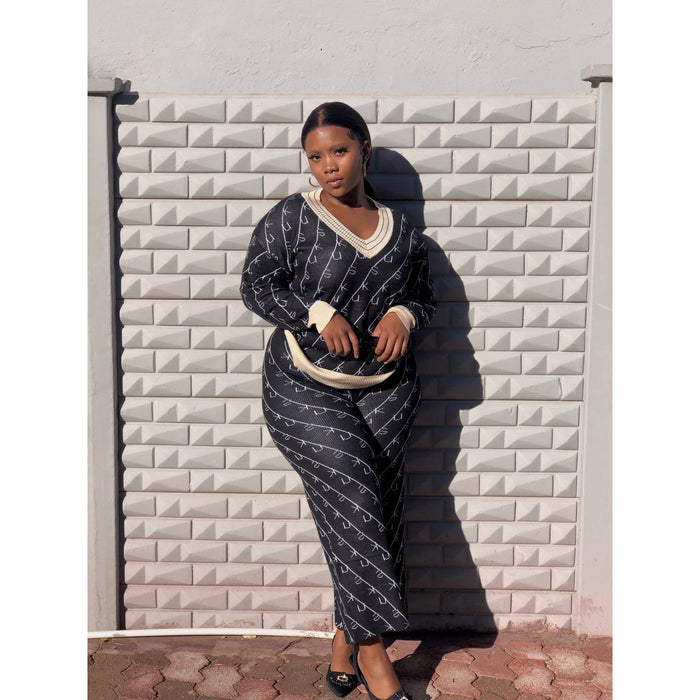 This Knitted 2 Piece Set is a chic and elegant wardrobe essential. Crafted from fine knit fabric with a fashionable silhouette, this two-piece set is perfect for dressing up or down for any occasion. Its unique design adds a stylish touch to your wardrobe.