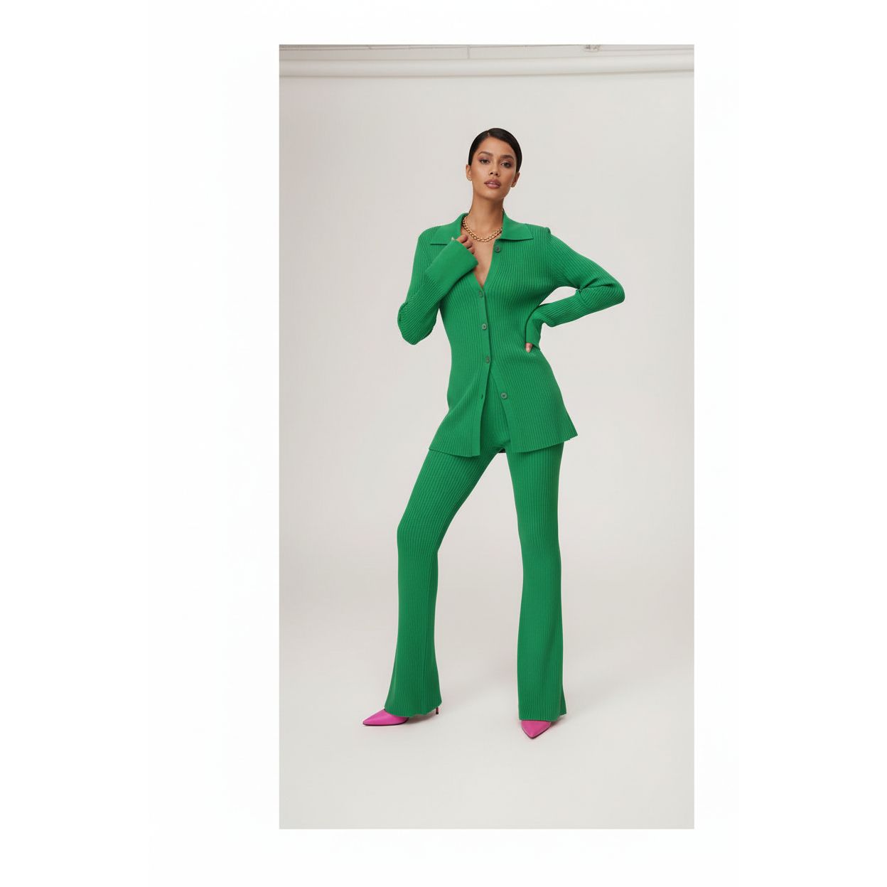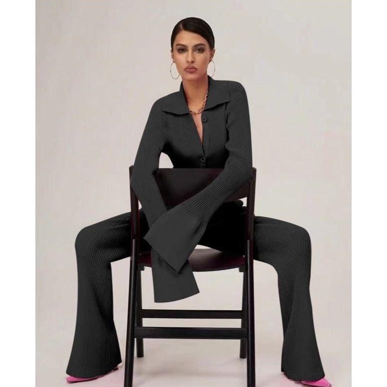 Crafted with quality and modern elegance, this 2-piece set is the perfect addition to your winter wardrobe. Made with warm and cozy knit fabric, it provides both style and comfort. Stay stylish and warm with this knitted buttoned set.