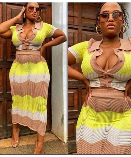 This knitted striped set combines quality and style in an elegant and fashionable manner. The perfect addition to your wardrobe for a timeless and chic look. Crafted with high-quality materials for long-lasting wear.
