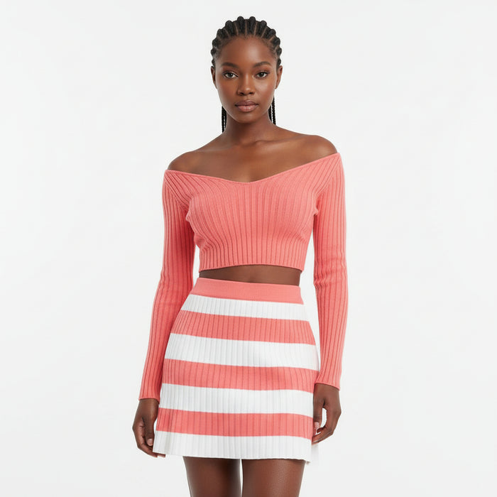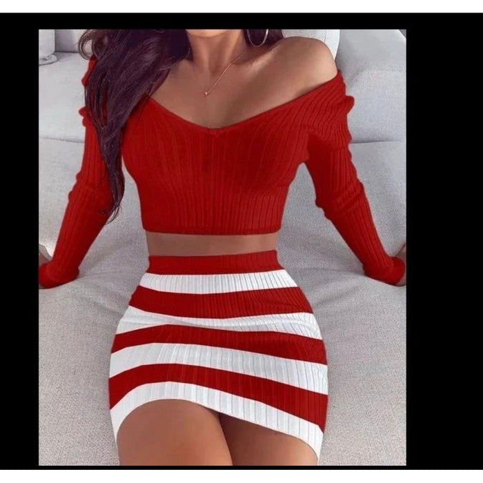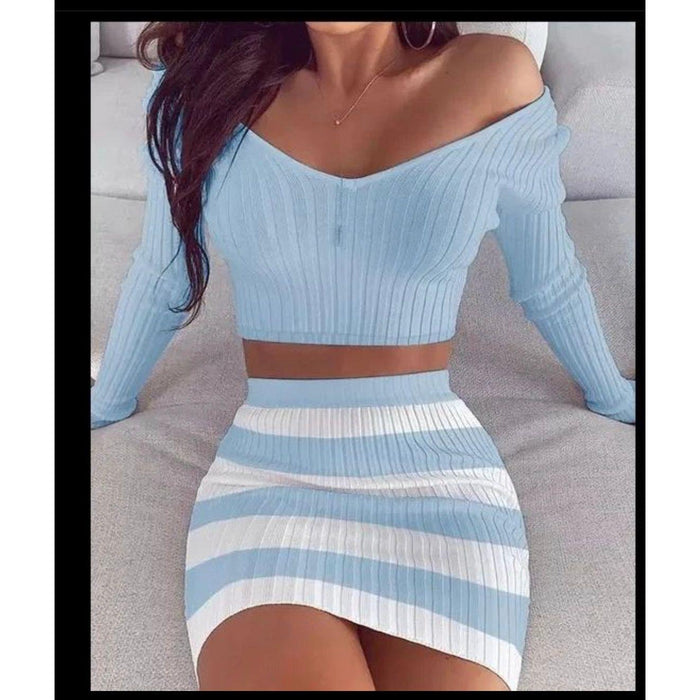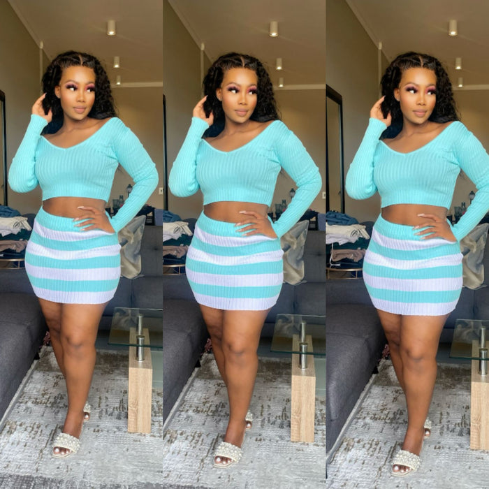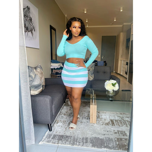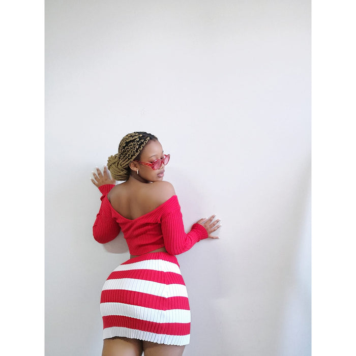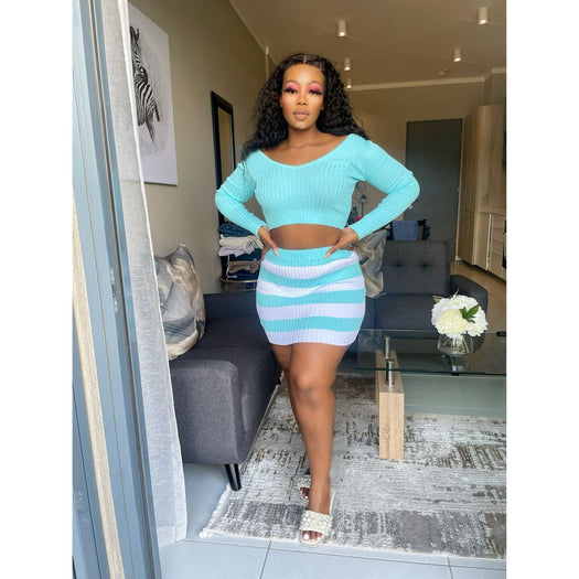 Crafted from a luxurious blend of cotton and spandex, this knitted cropped top and skirt set is an indulgence for fashion lovers. With its sexy, modern, fashionable, and elegant style, you can look and feel your best. Perfect for a night out on the town.