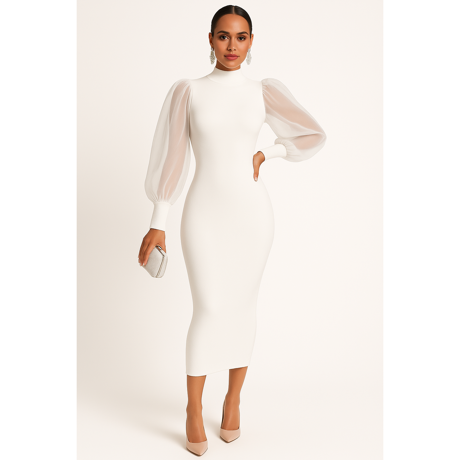 Experience effortless elegance with the Netted Sleeve Dress. Crafted from a delicate knitted sleeve, this dress exudes sophistication and grace. Its stylish and timeless design makes it perfect for any special occasion. Indulge in luxury with this timeless piece.