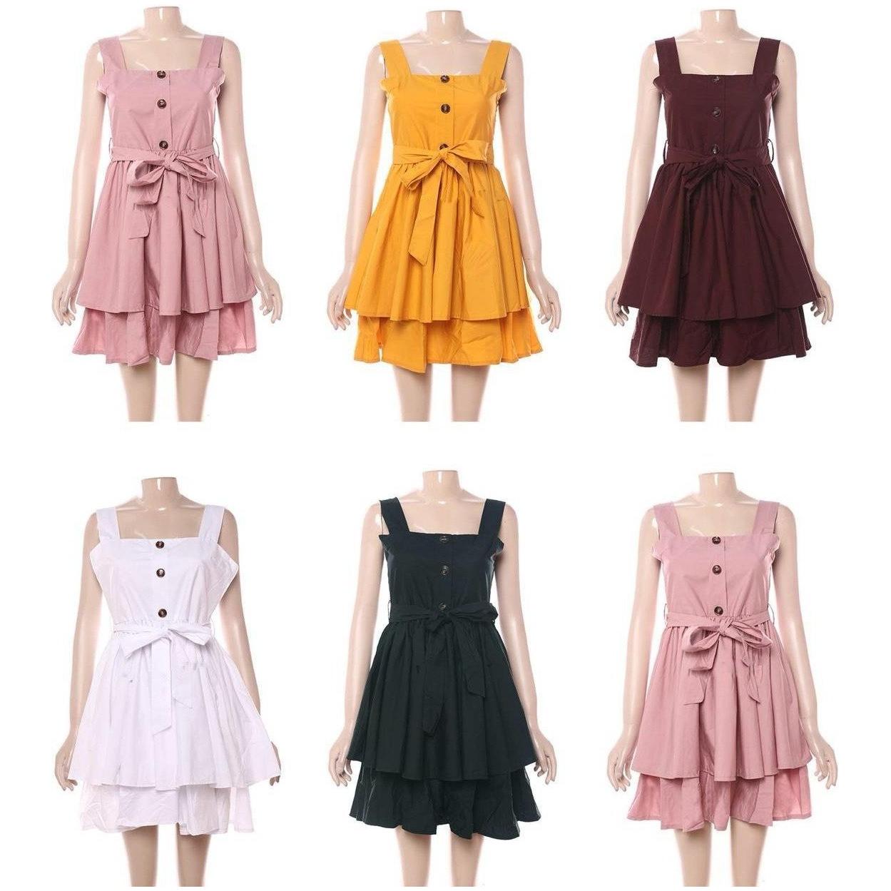 Layered Button Detail Mini Dress "The dress features a layered design with button detailing, giving you a sophisticated and structured look. With its mini length, it's perfect for showcasing your legs and making a fashion statement. Made with high-quality materials, this dress is a must-have for any fashion-forward individual looking to elevate their wardrobe. "