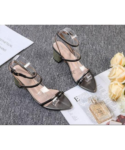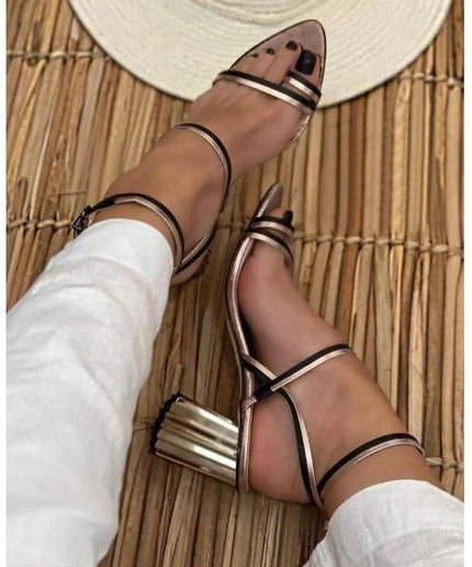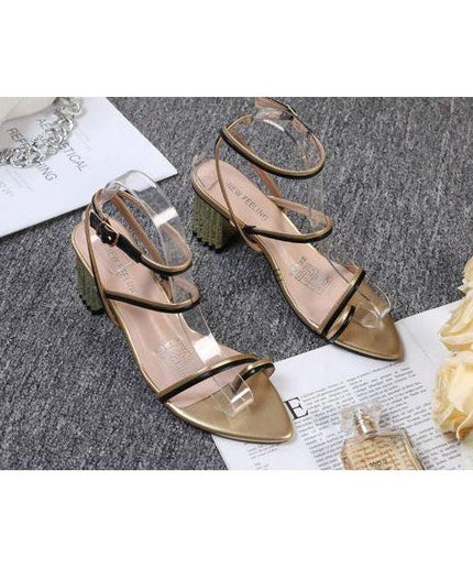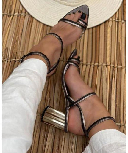 Leather Ankle Wrap Block Heel Sandal