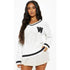 Letter Pattern Cable Knit Drop Shoulder Cricket Sweater