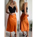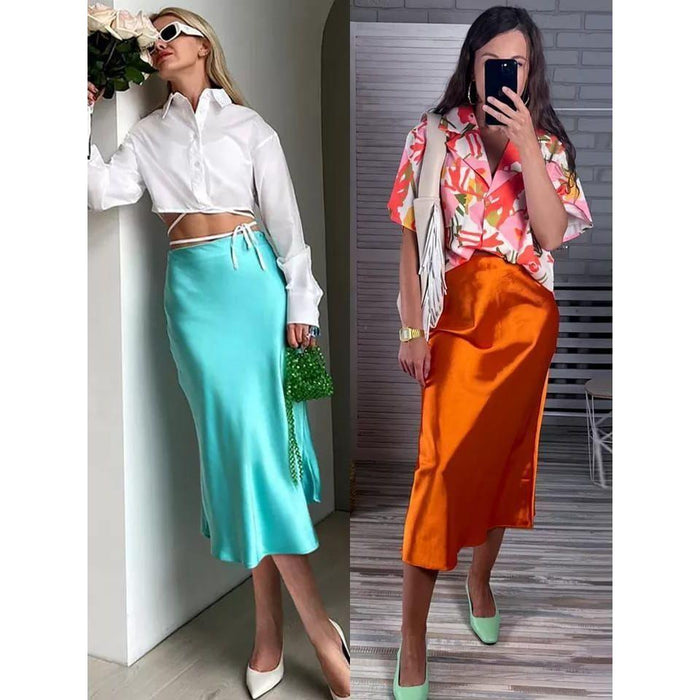 This Long High Waisted Satin Silky Skirt is perfect for the modern and fashionable woman. It offers a classic, elegant, and stylish look that is sure to turn heads. This skirt is sure to be a staple in your wardrobe for seasons to come.