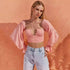 Long Puff Sleeve Sexy Halter Backless Crop Top