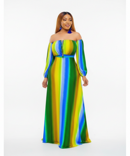 This modern, stylish maxi dress features a fashionable off the shoulder design and long sleeves. Perfect for glamorous nights out, this fashionable piece will ensure you stay up to date with the latest trends.