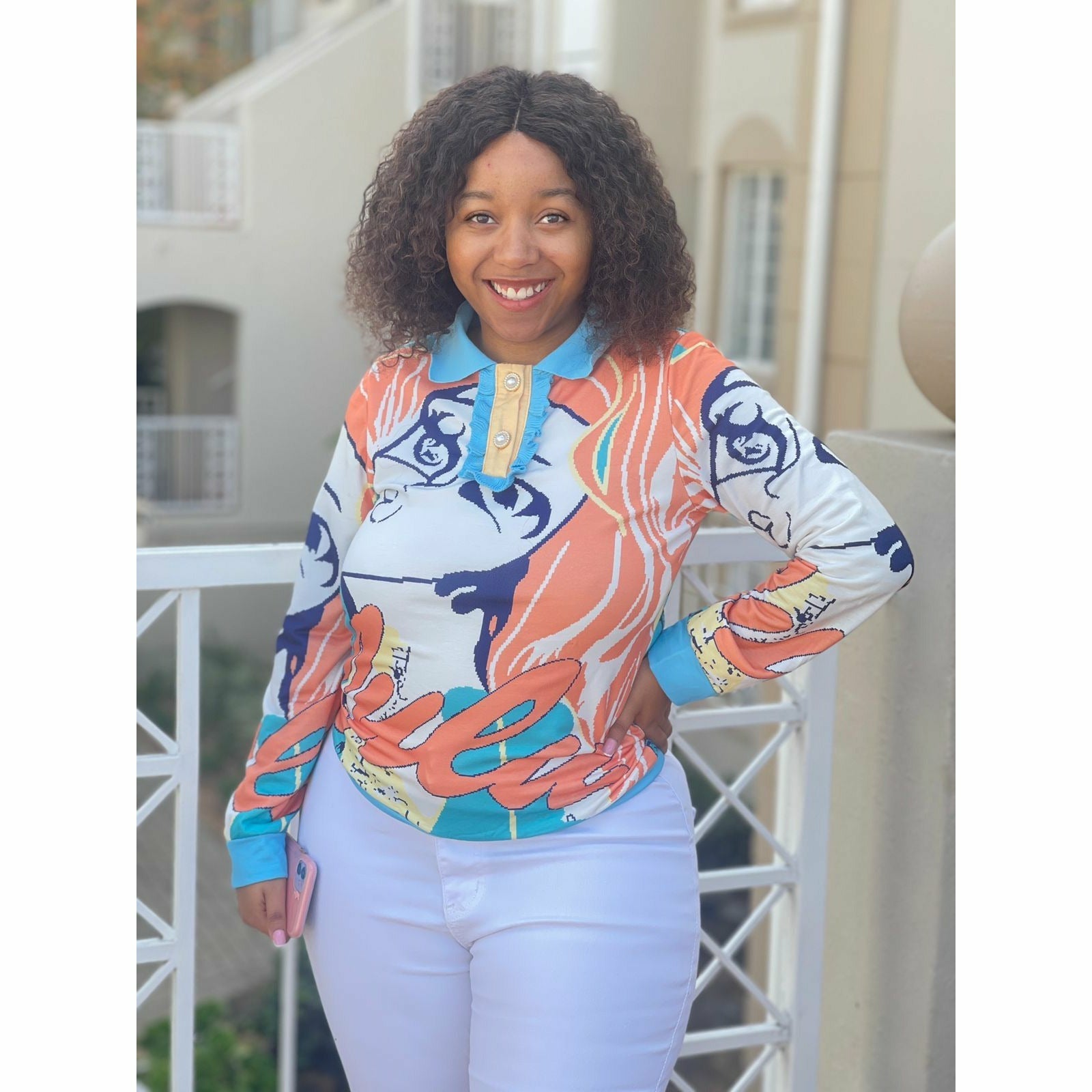Long-sleeve Printed Pattern Lapel Knitted Top