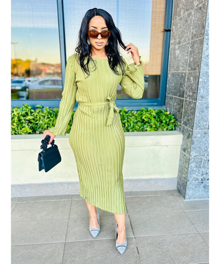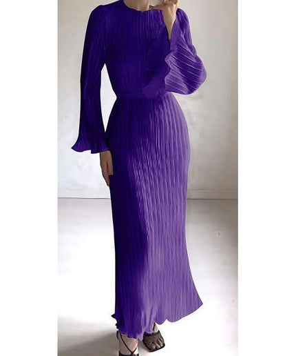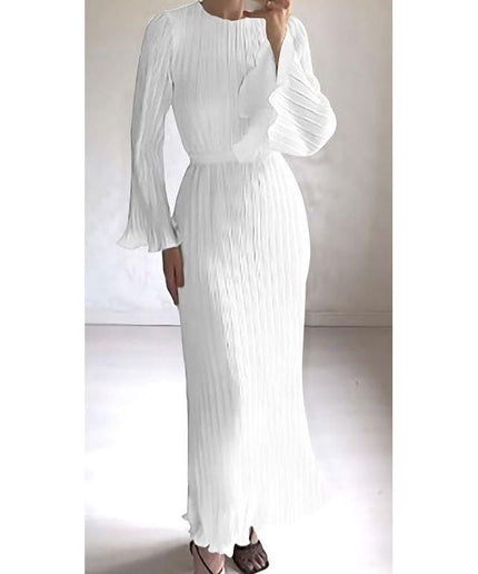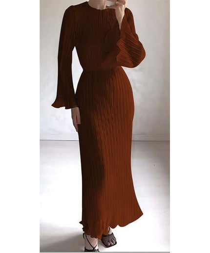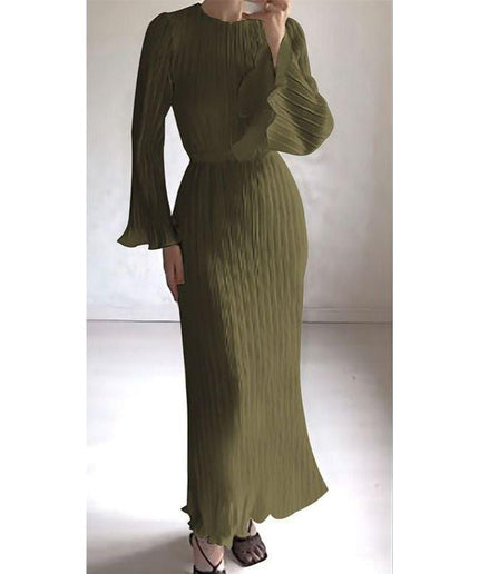 Discover the perfect blend of quality, modernity, and elegance with our Long Sleeve Round Neck Dress. Crafted with attention to detail, this dress features a flattering round neck and stylish pleated design. Elevate your wardrobe with this must-have piece.