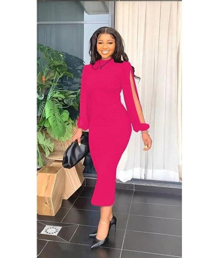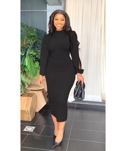 This Long Sleeve Round Neck Dress oozes modern elegance, featuring long sleeves, a round neck, and slender yet stylish cut. Enhance your wardrobe with a dress that radiates sophistication and charm. Perfect for any special occasion, this dress will certainly make a timeless statement.