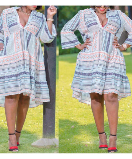 Long Sleeve V-neck Midi Dress