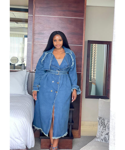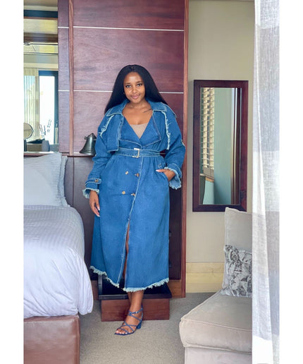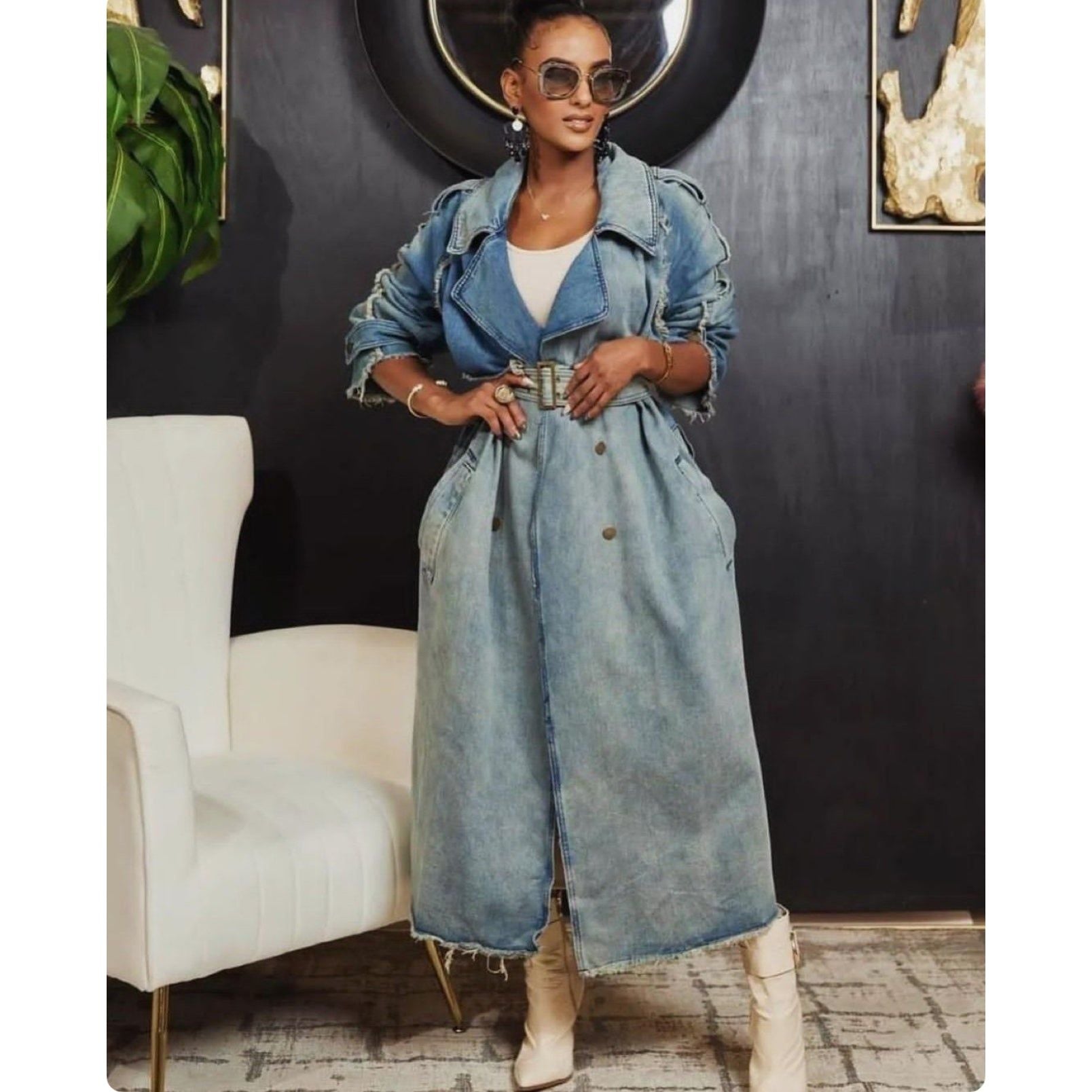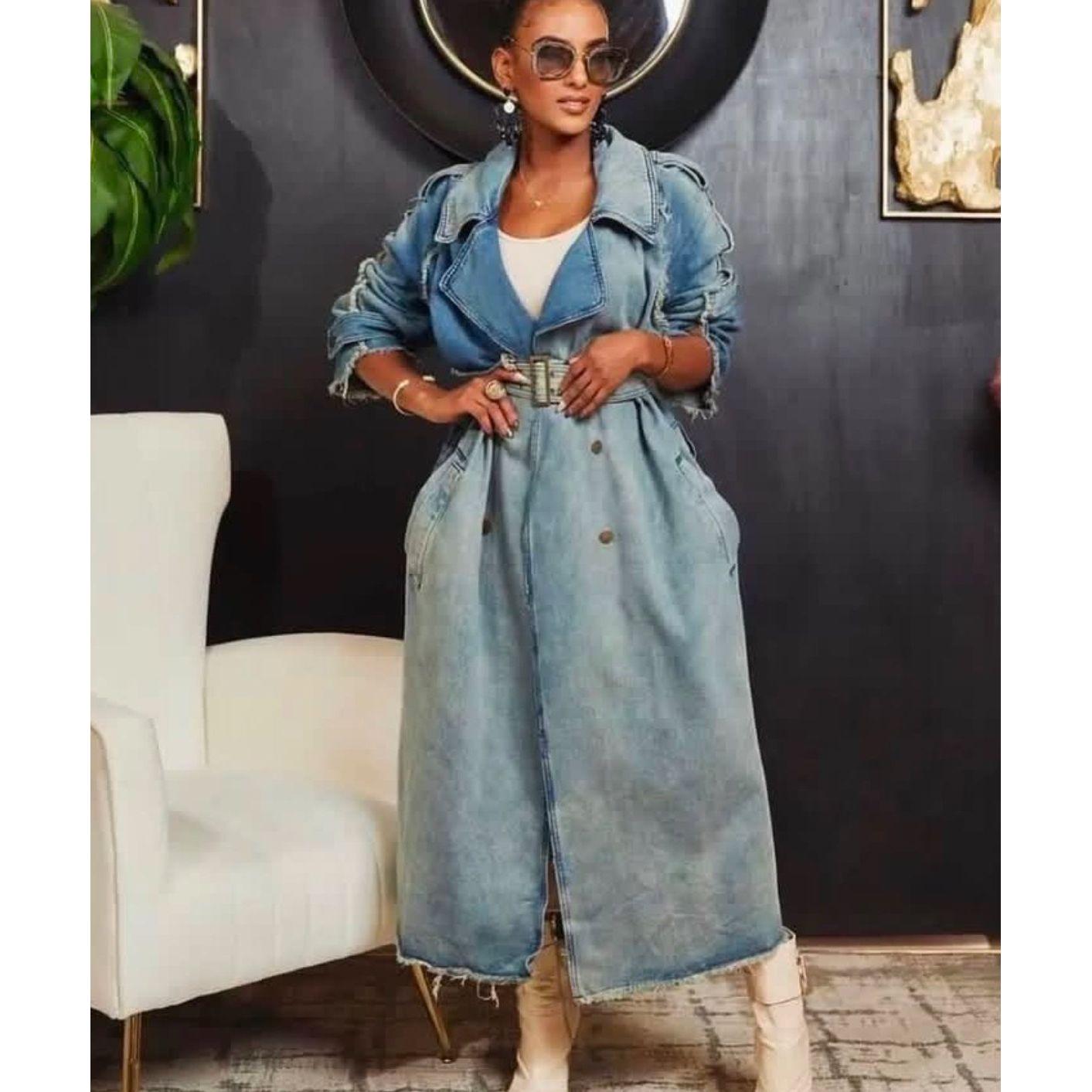This dress offers the perfect combination of comfort and style, with its long sleeves, waist belt, and denim fabric. It's a versatile piece that can easily be dressed up or down for any occasion. Plus, the maxi length provides full coverage while still creating a flattering silhouette.
