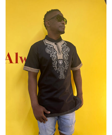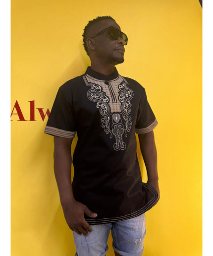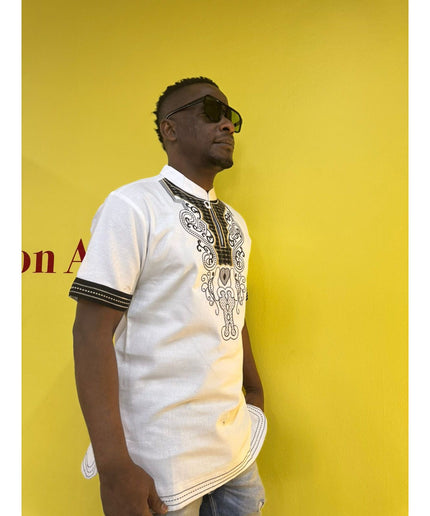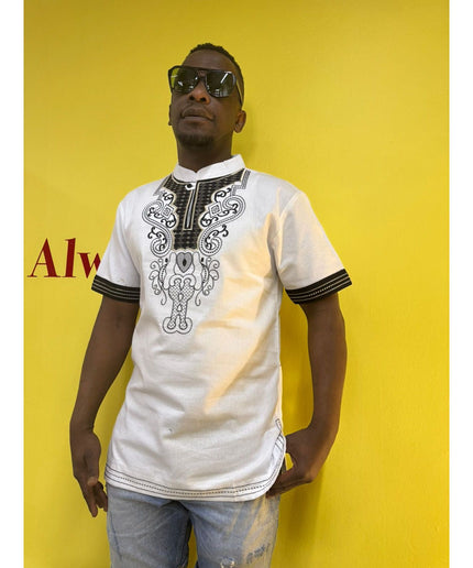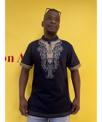 Mens African Vintage Embroidered T-Shirt Elevate your style with traditional African embroidery. The intricate patterns and designs add a unique touch to your wardrobe while representing a rich cultural heritage.
