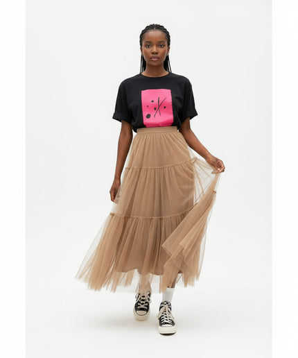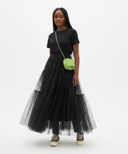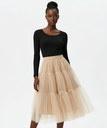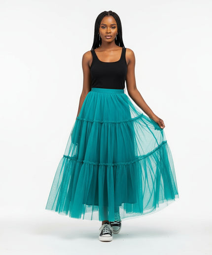 With its expertly crafted mesh tulle skirt and elegant pleated details, this maxi dress is a must-have for any fashion-forward wardrobe. Plus, its layered design adds stunning texture and depth to any outfit. Keep your style on point and turn heads in this timeless and versatile piece.