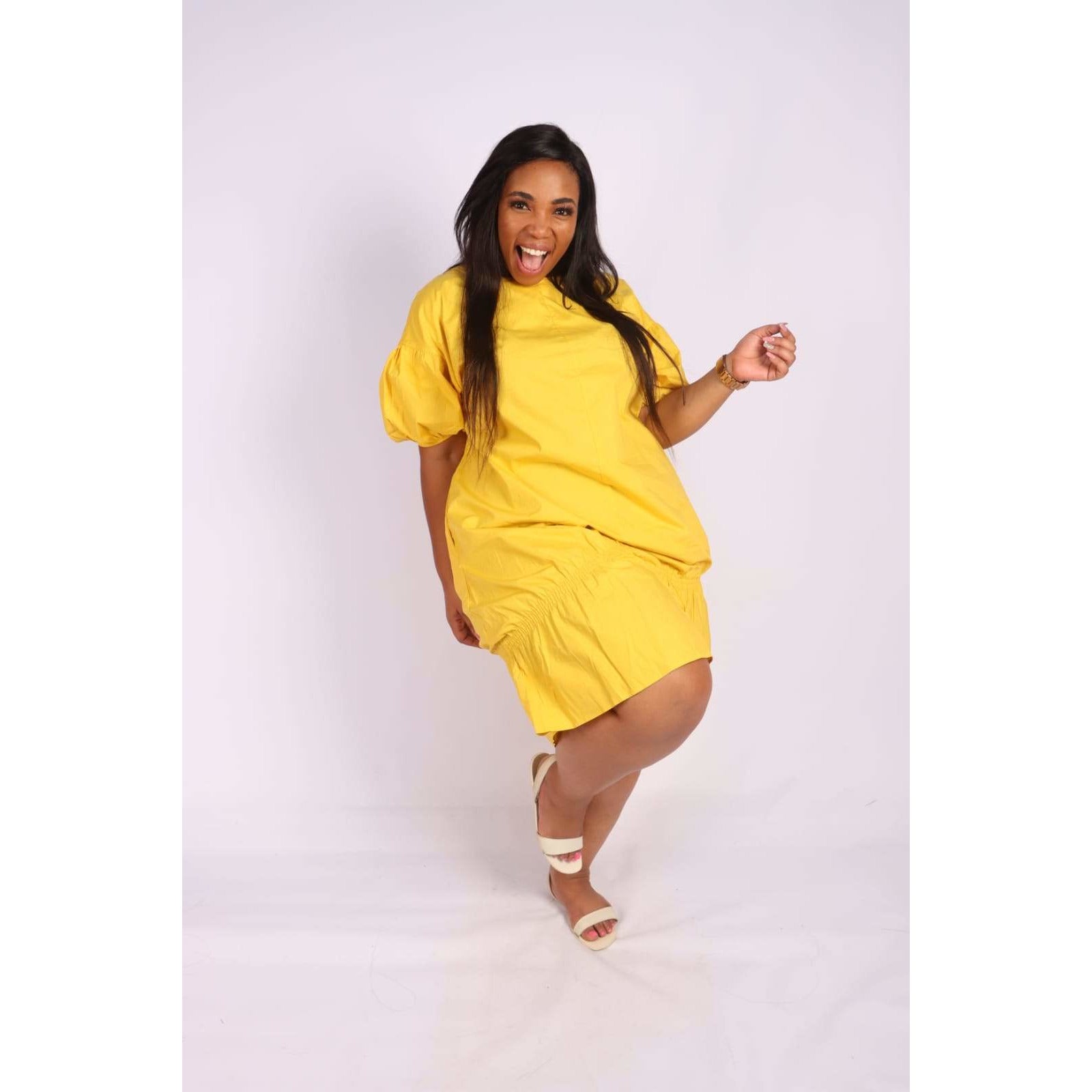 Elevate your wardrobe with our enchanting Mini Bubble Dress, a playful yet sophisticated piece that effortlessly transitions from day to night. Featuring a distinctive bubble hem that creates an eye-catching silhouette, this dress combines contemporary design with timeless elegance. The flattering cut hugs your curves in all the right places while the voluminous skirt adds movement and dimension to every step. Perfect for casual outings, weekend brunches, or evening events, this versatile dress pairs beautifully with sneakers for a relaxed vibe or heels for added glamour. Crafted with quality in mind, it's the statement piece your closet has been waiting for.Â