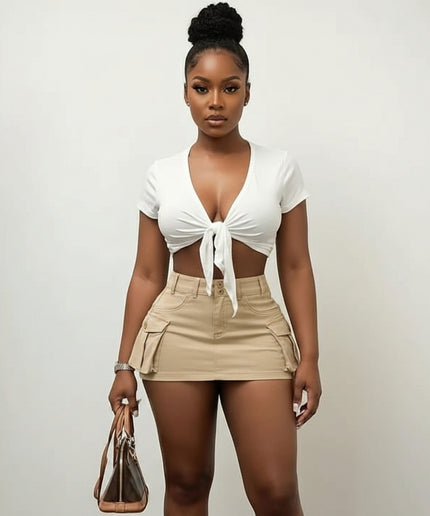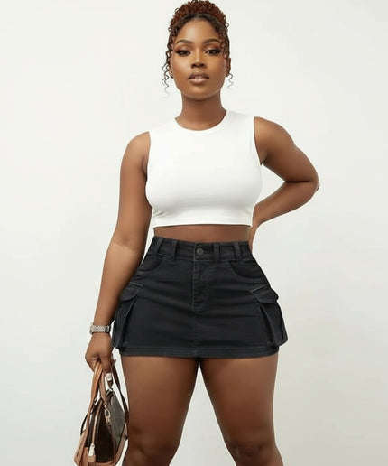 High Waist Side Pocket Mini Skirt. This mini skirt features a high waist and convenient side pocket, making it both fashionable and functional. With a timeless silhouette and a practical design, it's the perfect piece to add to your wardrobe. Get ready to elevate your style with this versatile and trendy mini skirt.