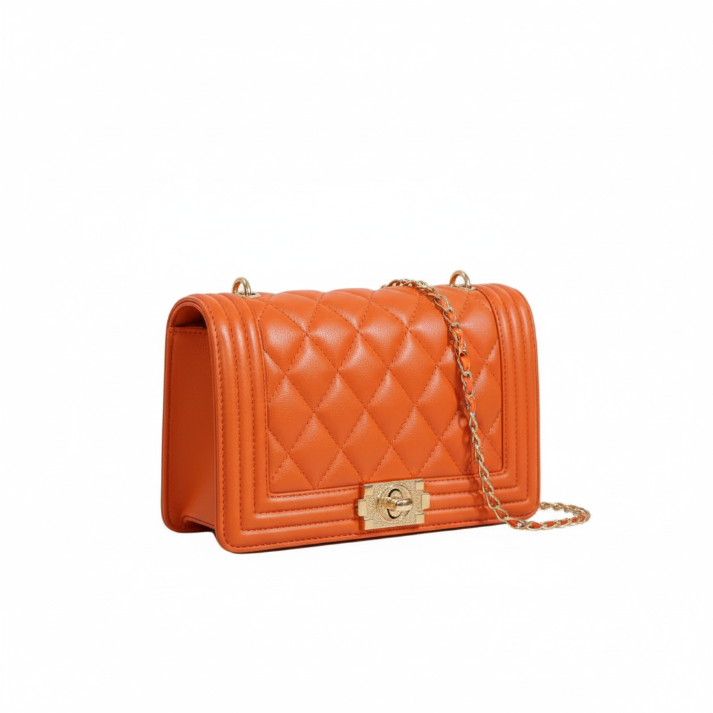 Mini Twist Lock Design Textured Flap Square Bag This bag features a twist lock design and textured flap for added sophistication and style. The compact size is perfect for carrying all your essentials while maintaining a sleek and polished look.