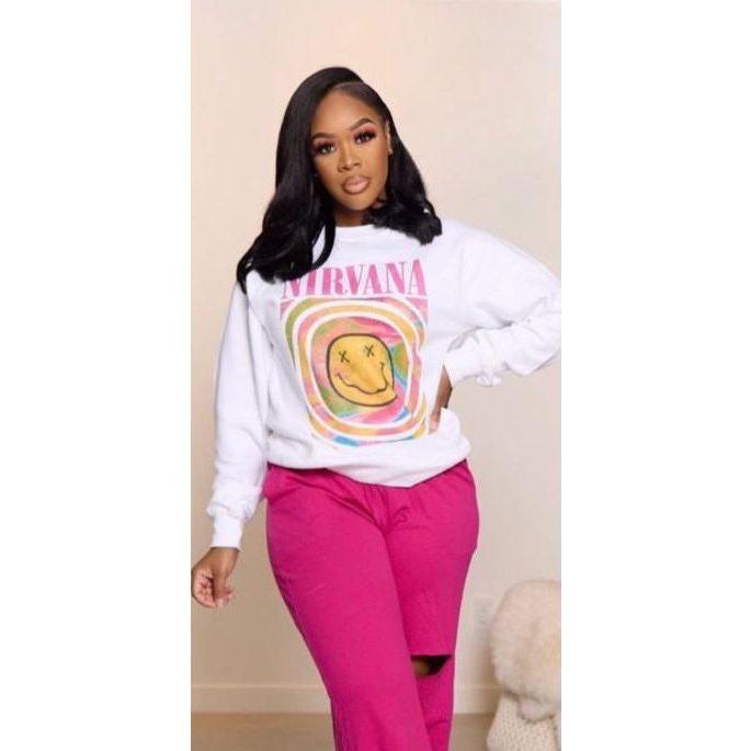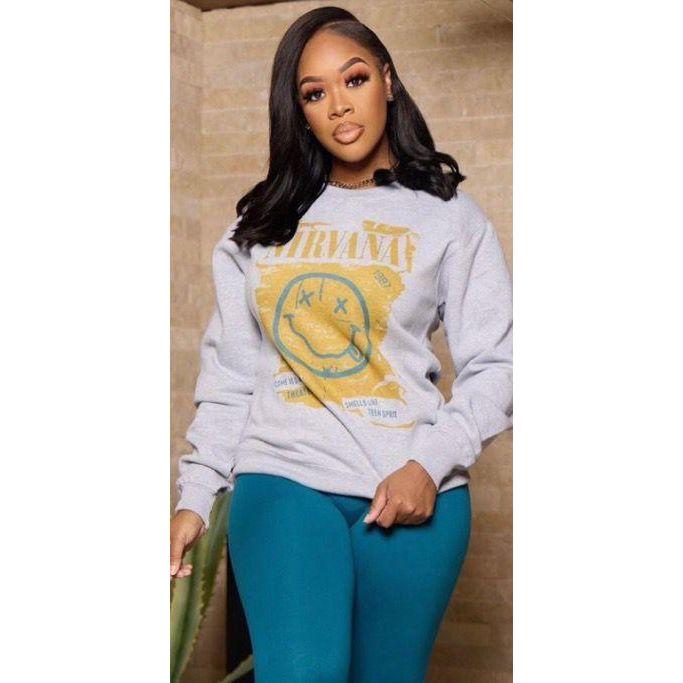 Upgrade your wardrobe with the Nirvana Smiley Sweatshirt. Made with high-quality materials, this modern and stylish sweatshirt will add a touch of edginess to any outfit. Perfect for those looking for a sexy yet understated look.