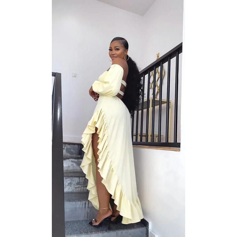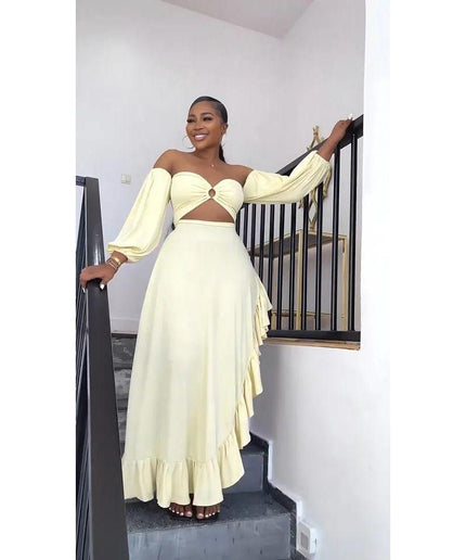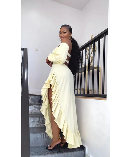 This Side Slit off-shoulder dress is the epitome of quality, style, elegance, and modernity. Its fashionable design is perfect for any occasion and will make you stand out from the crowd. Expertly crafted with attention to detail, this dress is a must-have for any fashion enthusiast.