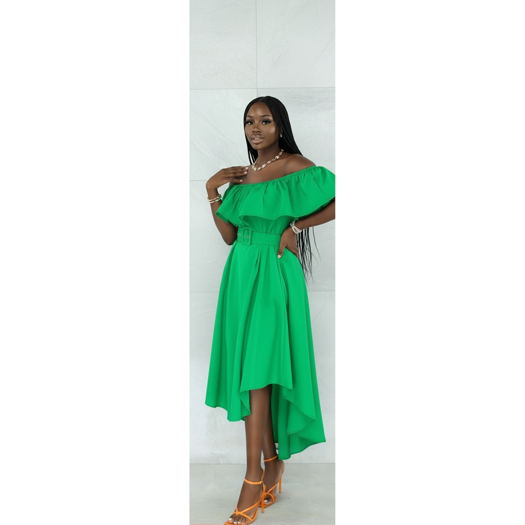 Off Shoulder High Low Dress The off shoulder design adds a touch of elegance, while the high low hemline creates a stunning silhouette that will turn heads.