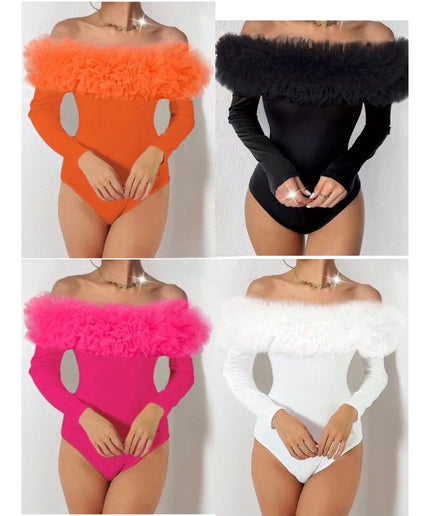 Off Shoulder Longsleeve Bodysuit Expertly designed to elevate your wardrobe, this off shoulder longsleeve bodysuit is made with the highest quality materials that provide unparalleled comfort and style. With over [insert number]% stretch, it's a versatile piece that will complement any outfit, from casual to sophisticated. Its timeless design and impeccable fit make it a must-have in any fashionista's wardrobe. Get ready to turn heads and feel confident in this flawless and flattering bodysuit.