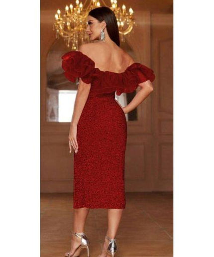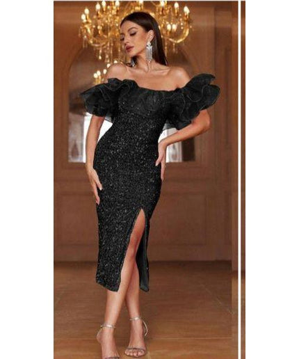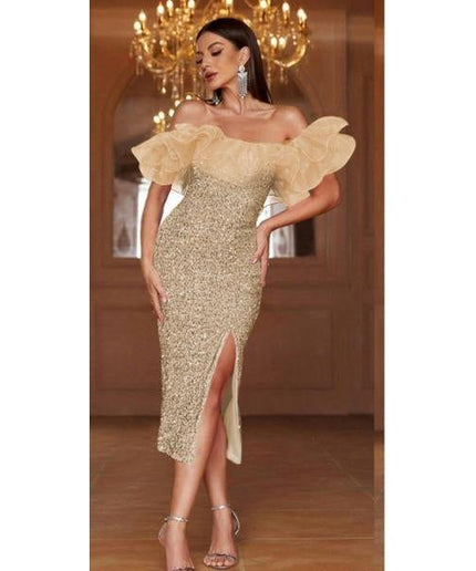 Off-Shoulder Sequins Short Prom Dress With Slit Party Gowns