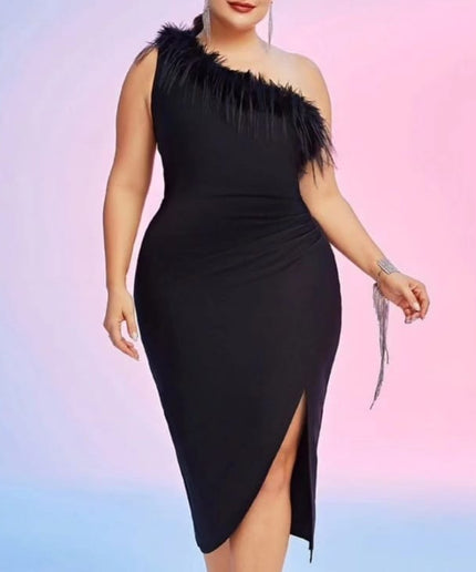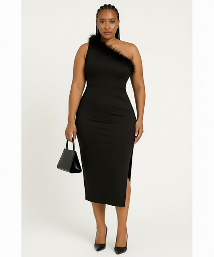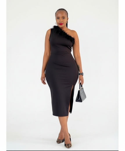 Discover a new level of style and sophistication with our One Arm Fluffy Bodycon Dress. Made with a fluffy, fashionable design, this dress exudes elegance and will elevate any outfit. The bodycon fit hugs your curves for a flattering silhouette, making you feel confident and stylish. Perfect for any occasion, this dress is a must-have in your wardrobe.