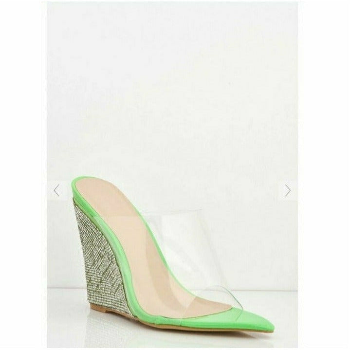 Fusing fashion and functionality, the Patent Dagger Perspex Diamante Wedges are perfect for creating a modern and stylish look. Crafted with quality materials, these wedges provide you with the perfect balance of comfort and elegance.