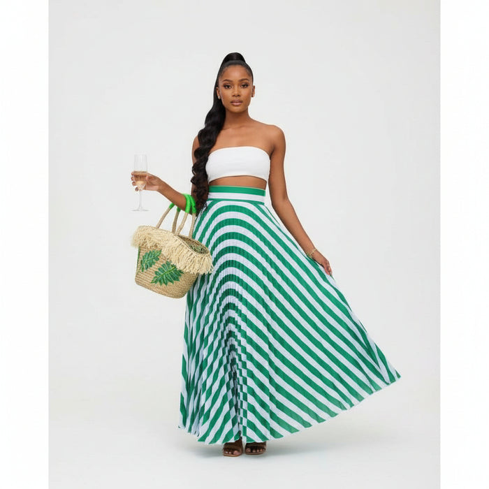 Make a statement with this luxuriously modern pleated long skirt. Styled with sophisticated lines, this fashionable piece will flatter all figures and bring an air of elegance and class to any wardrobe. Whether worn for a night on the town or to the office, the Pleated Long Skirt is a must-have for any stylish woman.