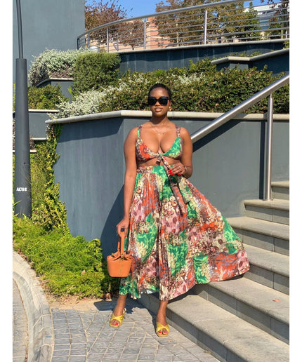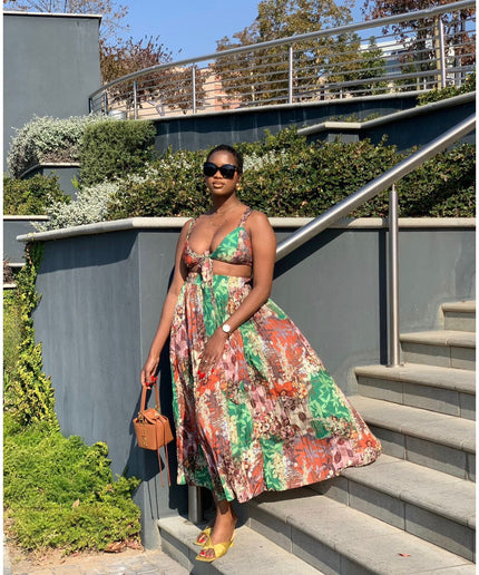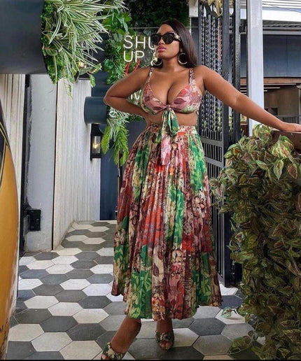 Look fashionable this season in this stylish, modern pleated skirt & sleeveless top set. Boasting a pleated design, you can feel confident and classy at any event. Perfect for creating a flattering silhouette, this dress is sure to make you stand out from the crowd.
