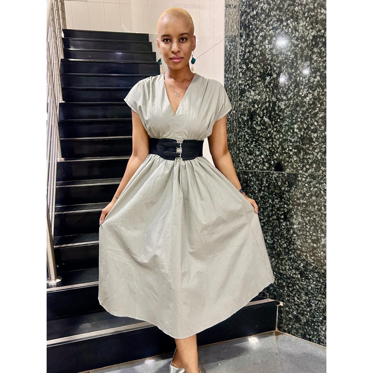 A versatile and stylish dress that's perfect for the office or a night out. Featuring a figure-flattering pleated waist belt and elegant flying sleeves, this dress is the perfect addition to your wardrobe.