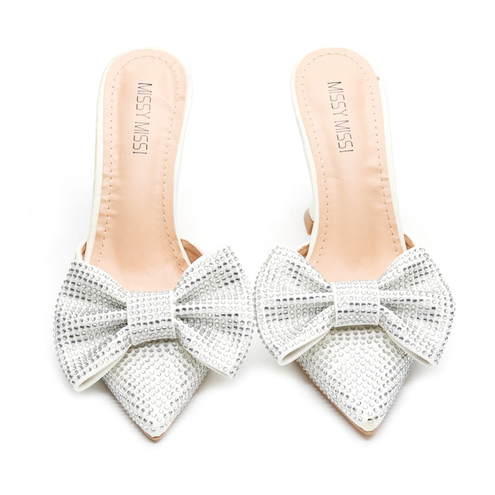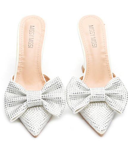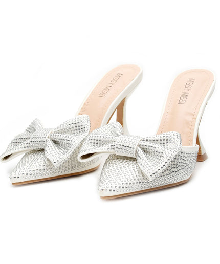 These Pointed Bow Crystal Sandals are stylish, fashionable and comfortable. Crafted with a pointed bow and shimmering rhinestones, they are sure to make a statement. Guaranteed to give your wardrobe the perfect dose of elegance.