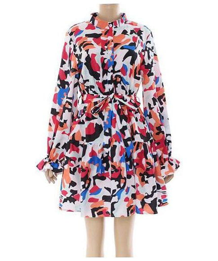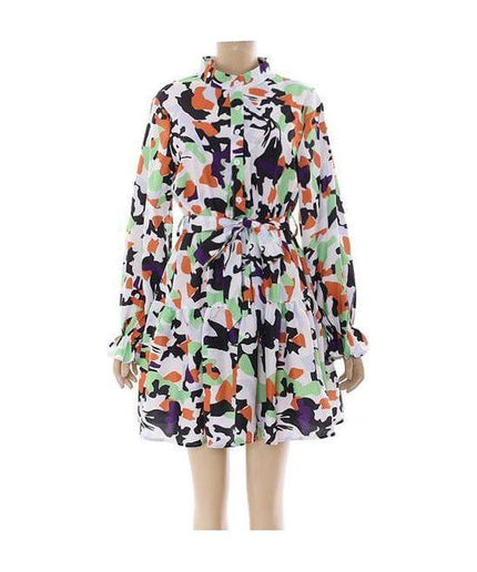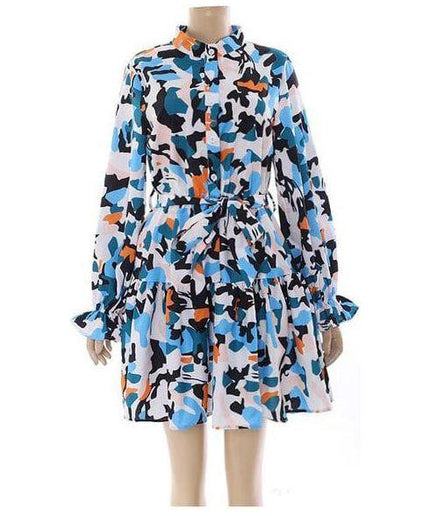 Print Lantern Sleeve Fold Pleat Curved Hem Dress. Structured, detailed, and stylish. This dress offers sophisticated pleating and a subtle curved hem to elevate your wardrobe.
