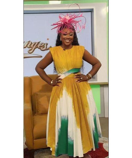 This African maxi dress features a vibrant print and comfortable kaftan style, perfect for any occasion. The airy fabric and relaxed fit make it ideal for warm weather, while the colorful design adds a touch of exotic flair to your wardrobe. With the Printed Kaftan Multi-Color African Maxi Dress, you'll look and feel beautiful.