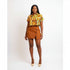 Printed Short Sleeve Shirt and Bodycon Mini Skirts Set.
