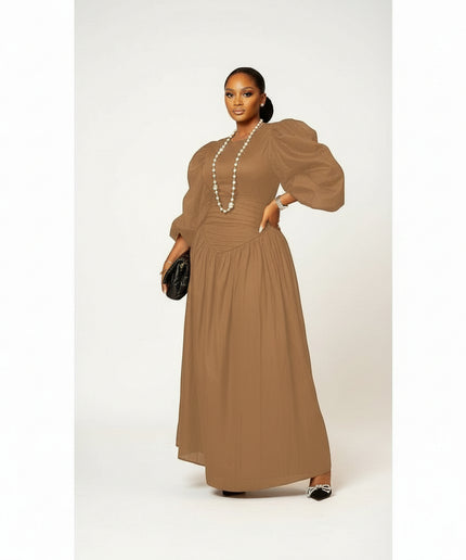 For a stylish and comfortable look that will keep you cool and covered, this long-sleeved maxi dress is an excellent choice. With a puffy and buff fabric, this dress offers a flattering fit that is perfect for any body type.