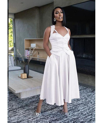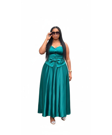 Queen Worth Satin Corset Maxi 2 Piece set. Looking for a way to enhance your style and confidence? The Queen Worth Satin Corset Maxi 2 Piece set is the perfect solution. With its high-quality satin material and corset design, this set will not only elevate your fashion game but also cinch your waistline for a flattering silhouette. Say goodbye to discomfort and hello to luxury with this exquisite piece.