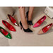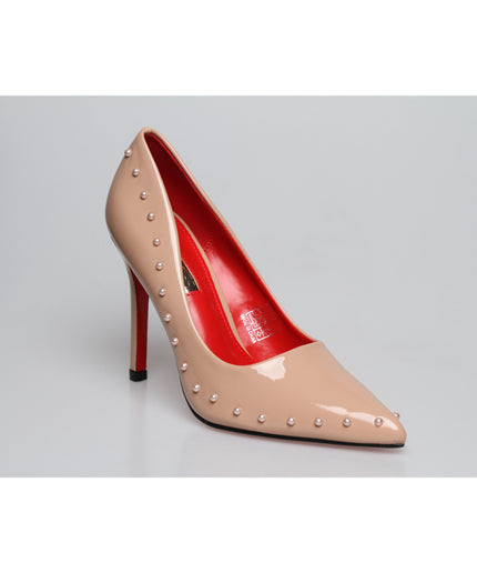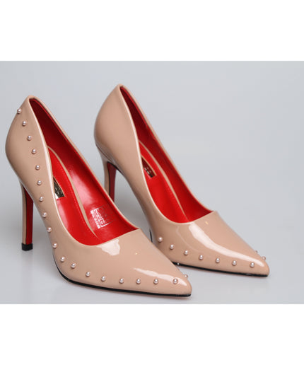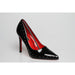 This classic red sole black patent rivet high heel is sure to turn heads. It's made from sophisticated patent leather with a distinct red sole and stylish rivet accents. This elegant high heel sandal is crafted from glossy patent leather and finished with signature red sole. The perfect choice for formal or casual occasions, its timeless design oozes class.
